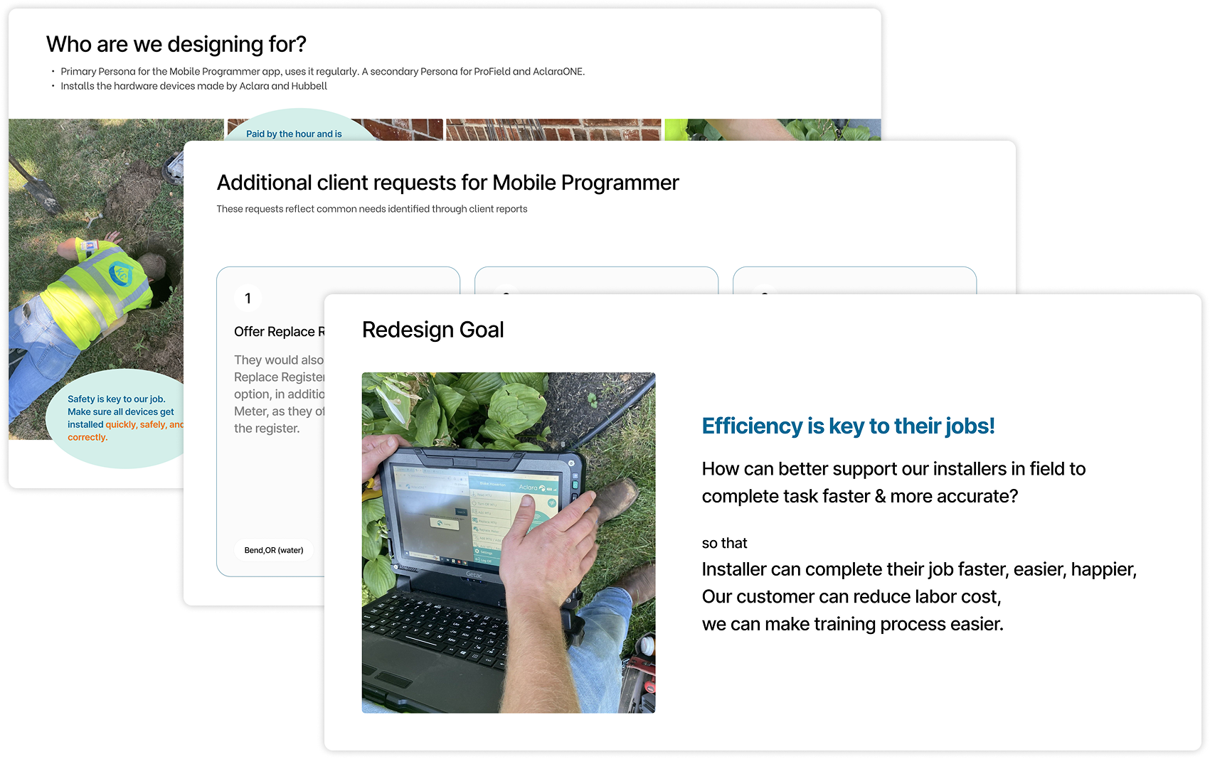 I proactively communicated with my manager and internal stakeholders to understand how the Mobile Programmer fits into the larger business ecosystem, from field operations to client contracts and training processes. Through these conversations, I was able to connect the usability issues I identified to their real business consequences.